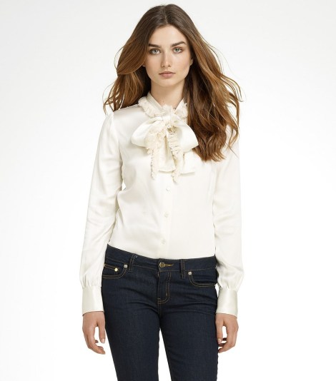 I don’t usually wear light color blouses but I love the Tory Burch Waverly Blouse in ivory.