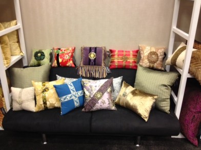 Lace and lining from a vintage wedding dress created the pillow to the left. The use of new and repurposed items make each pillow is a conversation piece, that has a story to tell. That is what I love most about Deborah’s creations. From sophisticated to ornate designs, there is a pillow creation for every taste and are real keepsakes. Deborah Main Designs make great gifts for nearly all occasions!