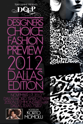 Designer’s Choice Fashion Preview is Saturday, November 17, 2012 at Dallas World Trade Center2050 N Stemmons Fwy, Dallas, TX 75207. Doors open at 6:00pm for the VIP Meet and Greet Reception & 7pm for General Admission. The show starts at 7:30pm.