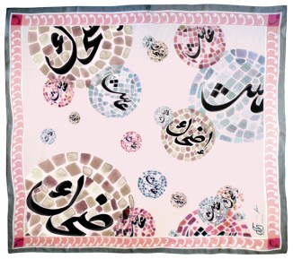 Recently Dareen partnered with Kinda Hibrawi, an artist and student of Arabic Calligraphy, to create the limited edition “Live and Laugh Scarf! to benefit St. Jude Children’s Hospital.