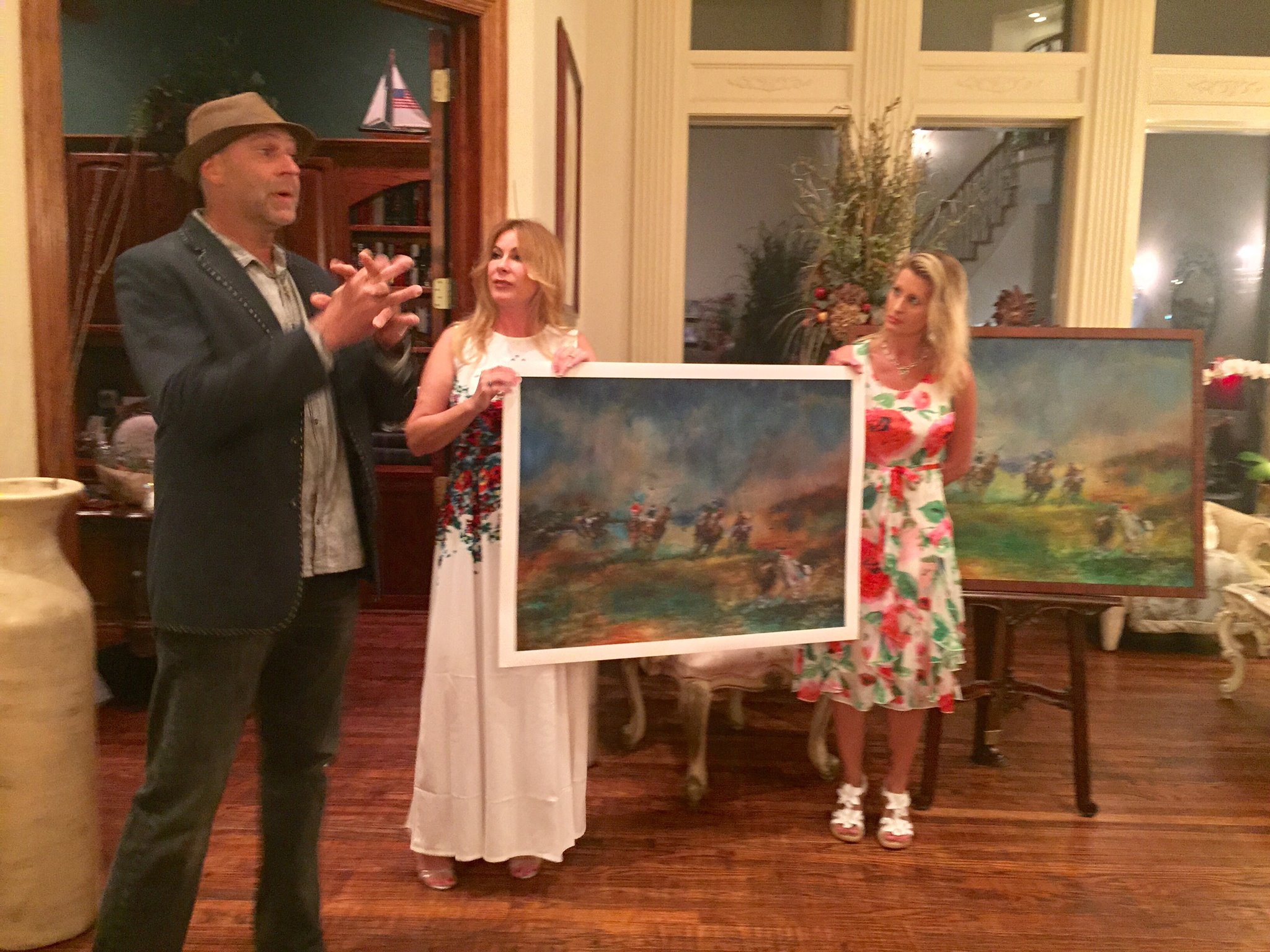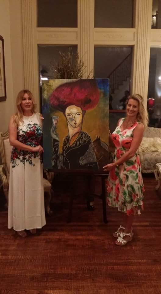 The second painting was a complete surprise to all. Rolando attended one of the first polo matches at Prestonwood Polo Club when they first opened in 2009, as a guest of the Millers and went back to his studio and painted ” The Polo Lady“. He was inspired by the women at the polo match that day. Of course is polo lady is wearing a big hat, has a glass of wine in hand and a pony by her side. How perfect! He announced to the crowd that should anyone purchase this painting he will give half to the charity. Diaz strong sense of philanthropy and giving to not only his community, but communities globally as he travels the world doing good deeds for important ceases with his art, never ceases to amaze.