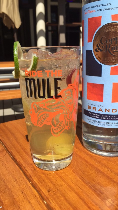 Everyone loves a Mule! In this cocktail, Eastwood’s house-made ginger beer is paired with Copper & Kings Immature Brandy, fresh lime juice, garnished with frozen grapes and a lime twist for new take of the classic Mule. Eastwood’s crafts two different house-made ginger syrups in-house – one sweet and one spicy. The result is two different house-made ginger beers that guests can choose from to customize their mule.