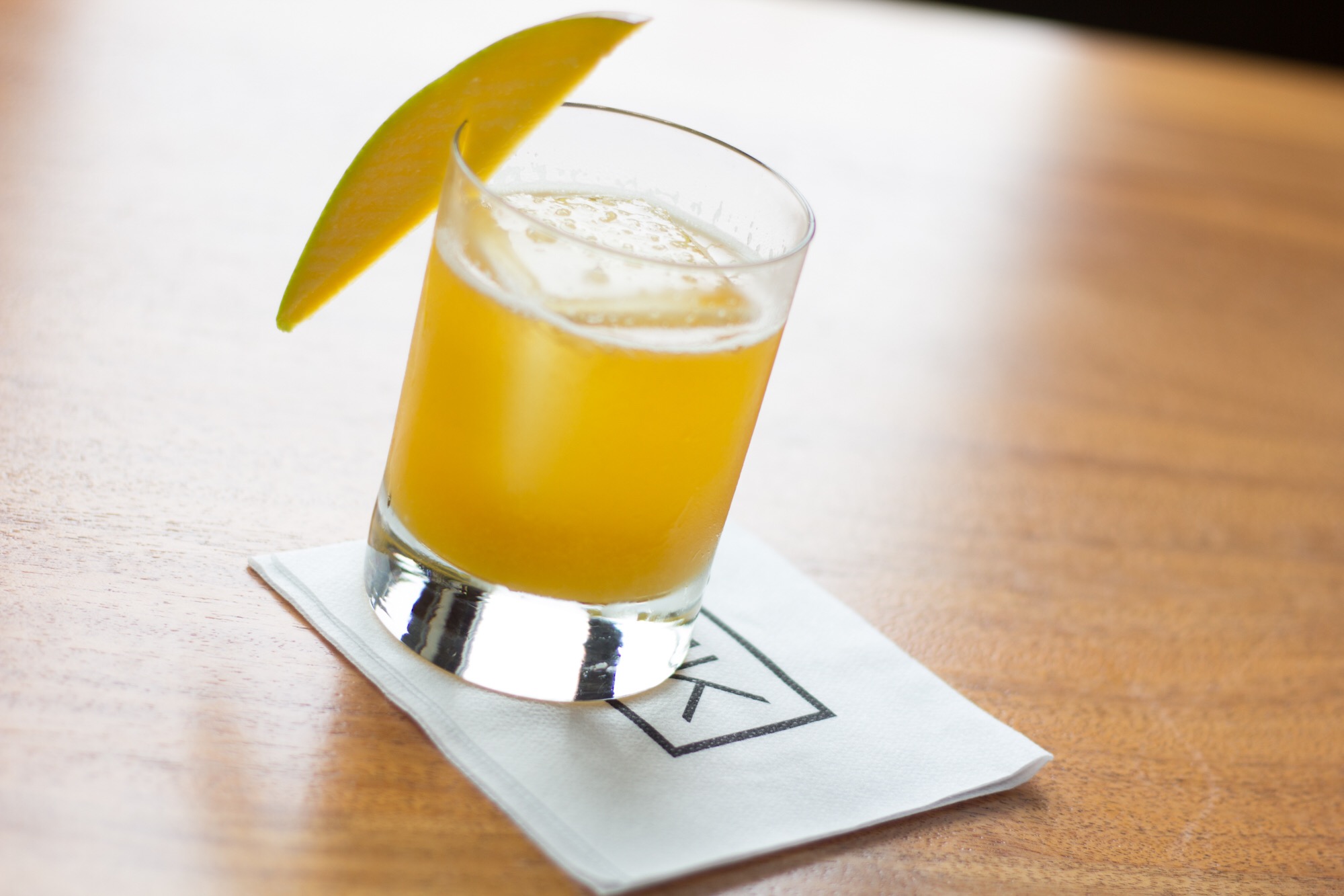 Bourbon and beer collide, creating a delicious cocktail made with Witherspoon’s Bourbon, Deep Ellum IPA, mango agave, bitters and lemon. For a little drama, the glass is garnished with a slice of mango.