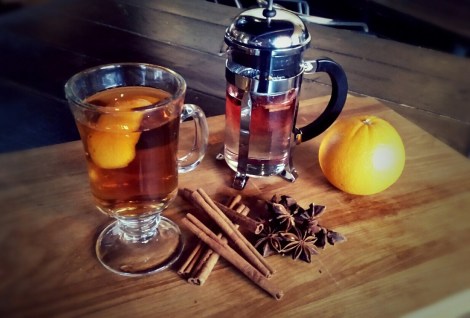 This spicy, fruity twist on the classic hot toddy will rock your cranberry sauce (or in my case, cranberry chutney) lovin’ world. Equal parts Midnight Moon 100 proof Cranberry Moonshine and Drambuie steep with star anise, cinnamon, clove and balsamic-glazed cranberries in a French Press to brew the perfect answer to all this chilly Dallas weather.