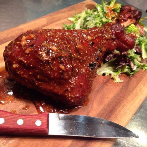 What: Turkey Cobb Leg for 2 – comes with local greens, St. Pete’s Bleu, grapes, mustard and bacon jus