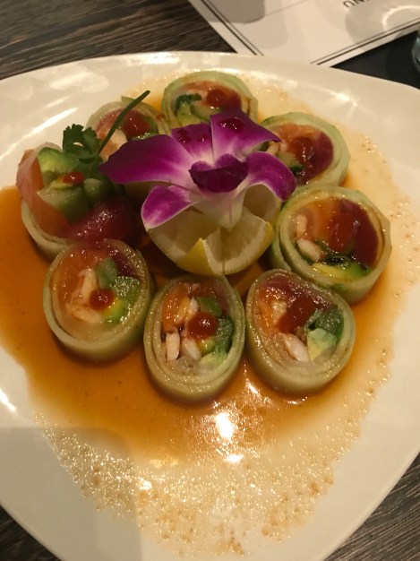 The menu is filled with sushi, sashimi, creative specialty rolls, shareable platters and unique entrees. Standouts include: Tempura Avocado Bombs, Glazed Lamb Lollipops, locally sourced Texas Wagyu Filet, Marquee Lobster Tail, Sea Bass, Octopus Salad, and sushi offerings like the Happy Wife, Happy Life Roll.