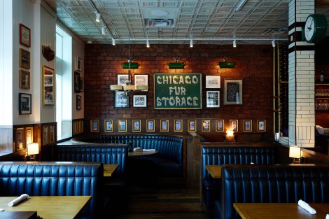 Reminiscent of a worn-in post-prohibition haunt, D.L. Mack’s might be the oldest new restaurant to open this year in that every design element is a vintage vestige from mid-21st century America. The warm interiors are nostalgic of a “Windy City” brownstone with its southernmost wall of floor-to-ceiling reclaimed antique brick dating back to before the Chicago Fire of 1871. The surrounding wood-paneled walls enveloping the dining space are hung with iconic vintage works sourced from The Art Institute of Chicago’s sports memorabilia collection. D.L. Mack’s two-hundred-year-old reclaimed dark wood floors are marked with ten dark leather booths and a quaint wraparound bar.