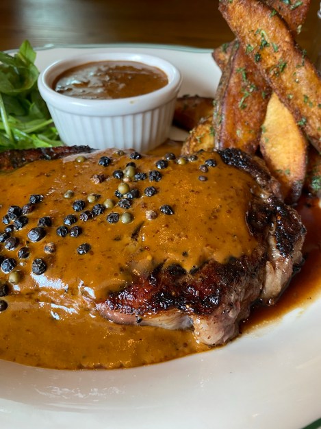 Standout entree Steak Frites Au Poivre offers a 10-oz. USDA prime NY strip coated with coarsely cracked peppercorns in a classic au poivre sauce inspired by the legendary dish made famous by Raoul’s in New York City. The dish comes with Mack’s Fries – garlic Kennebec potato wedges, tossed in roasted garlic oil and an in-house shake spice mix.