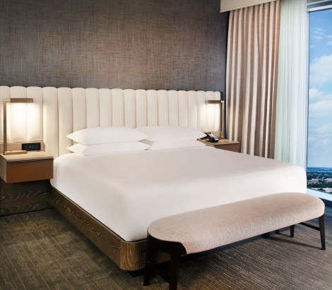 A project of Sam Moon Group and the city of Frisco, the 18-story, 303-room hotel features minimalist contemporary decor with subtle, muted earth tones and lots of natural night. The rooms are spacious with an open closet concept, 65” high definition flat panel televisions in every room, and lavish bathrooms.